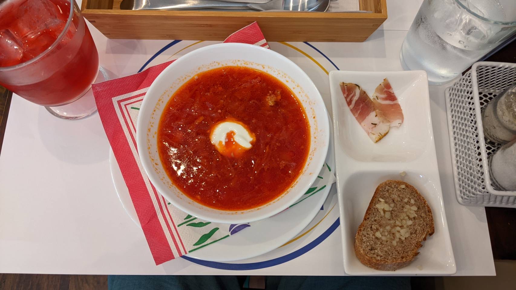 ウクライナ料理のお店 2023.09.14 社員の休日 大阪市内、昭和町にオープンしたウクライナ料理のお店。避難してきた一般家族の方々がやっています。日本人向けに調整されていない味ですが、優しい味でした。 社員の休日 うちに猫がやってきた前の記事 アオに囲まれて次の記事
